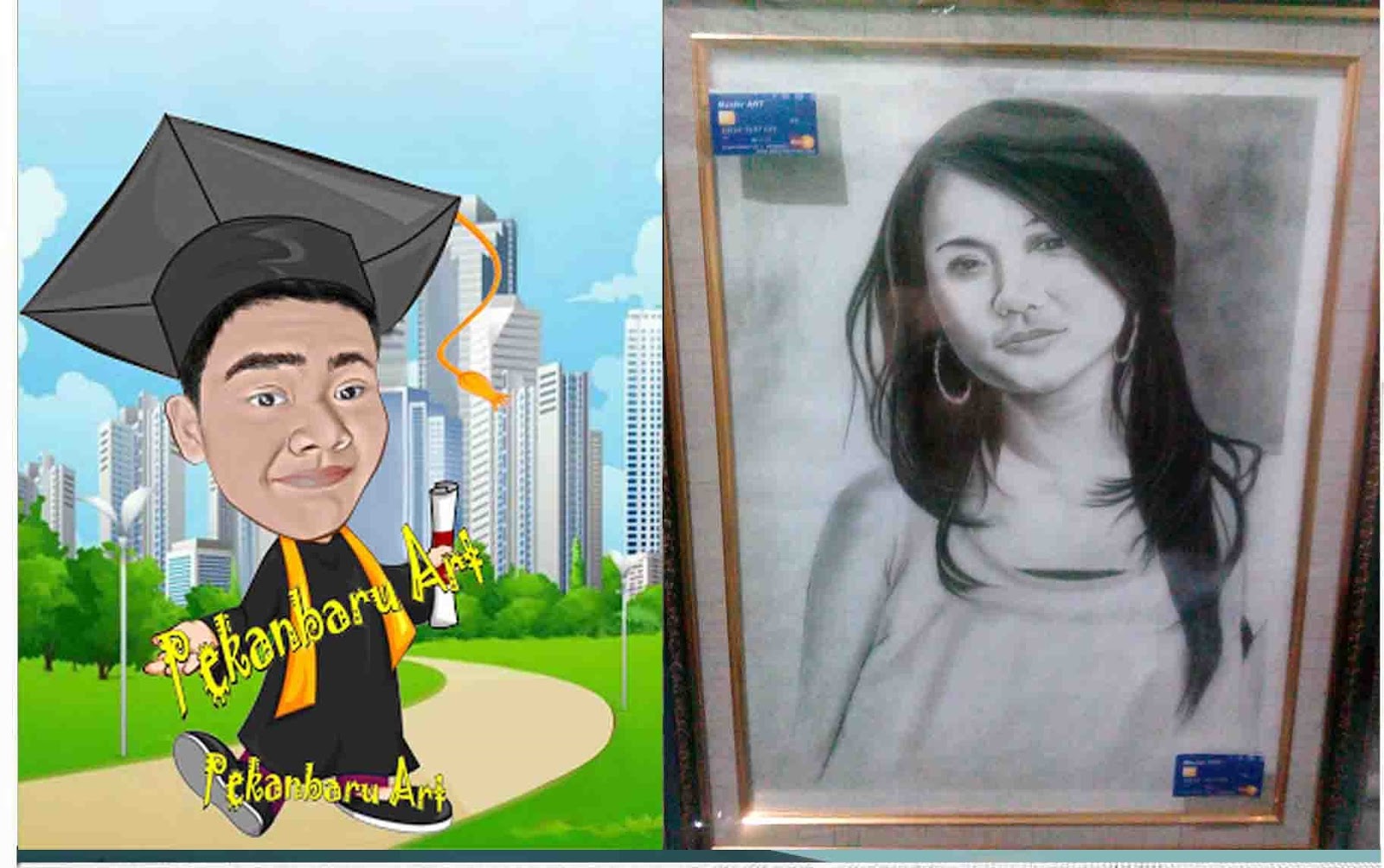 HP. 08127657425 - BBM: 5D995D9DDapatkan KARIKATUR, Sketsa Wajah dan berbagai jenis Lukisan dengan memesan langsung ke-Sanggar Seni Pekanbaru-ART. Contact: HP.08127657425 yang berlokasi di Jl. Rajawali Sakti Gg. Bersama - Panam - Pekanbaru. Kami menerima pesanan berbagai jenis lukisan yang bisa anda jadikan souvenir, kado pernikahan, kado ucapan selamat wisuda dan berbagai keperluan hadiah lainnya. Kami juga melayani pesanan Sketsa Wajah & Karikatur (Manual/Digital).